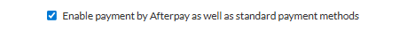 3. Enable the checkbox “Enable payment by Afterpay as well as standard payment methods”