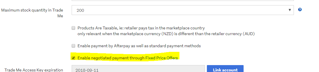 - Tick the box labelled "Enable negotiated payment through Fixed Price Offers" if you want it enabled, or untick it if not.