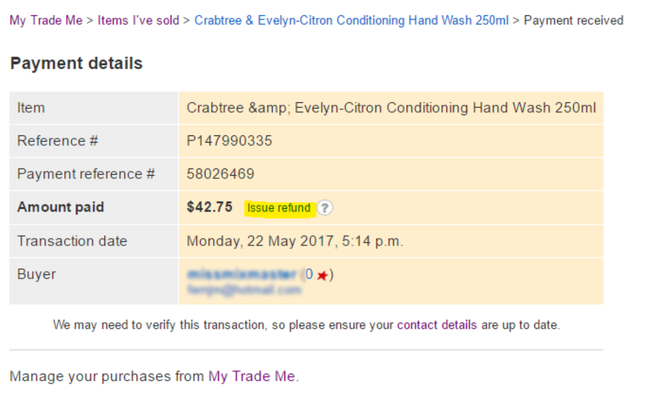 - Important notes about Trade Me refunds