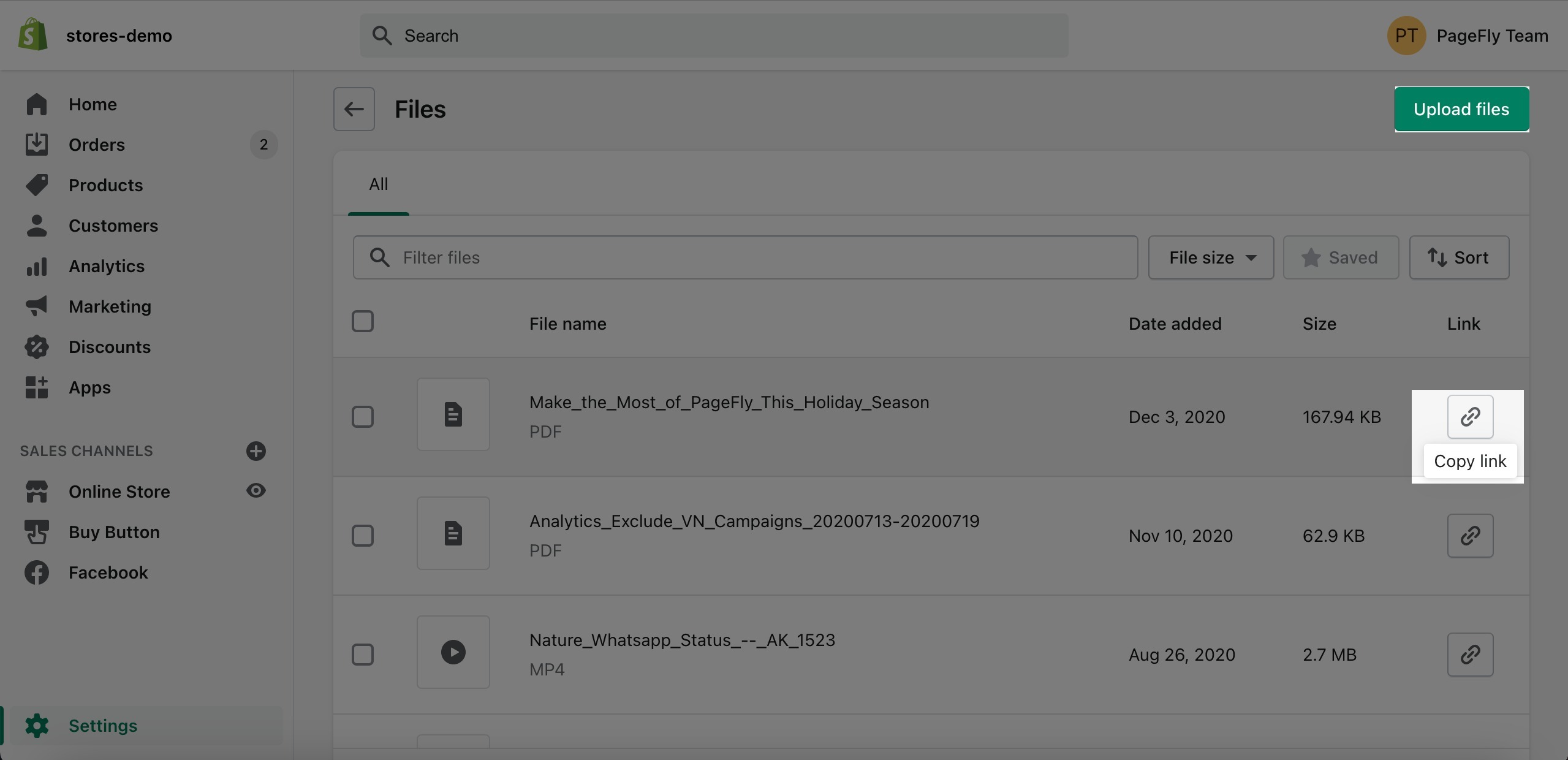 In your Shopify admin, go to Content → Files.