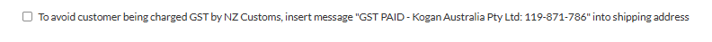 This ensures orders are clearly identified as GST paid on arrival in NZ.