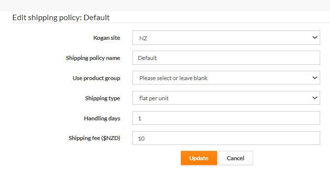 If a product does not have a valid Kogan NZ shipping policy, it will not list on Kogan NZ.