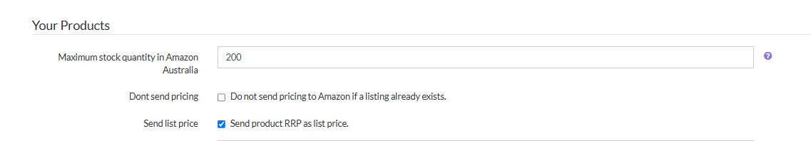 - Locate and tick the checkbox labelled Send list price. This action will transmit the RRP to Amazon as the 'list price'.
