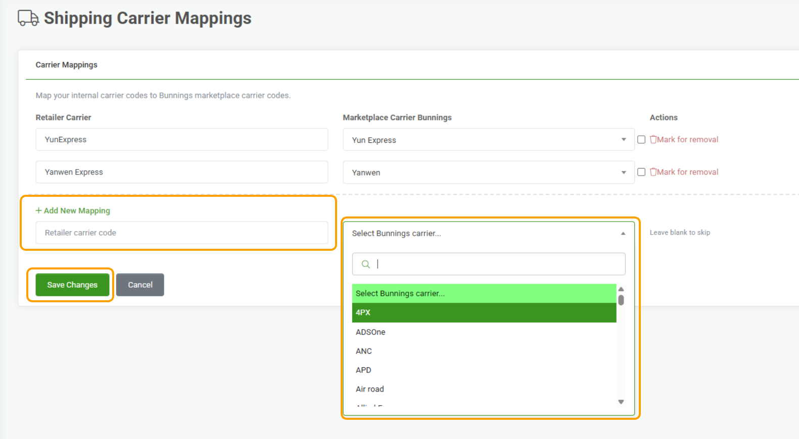- Under add new mappings insert your Carrier name as it exactly appears, ensuring there are no leading or end spaces either side of the name.