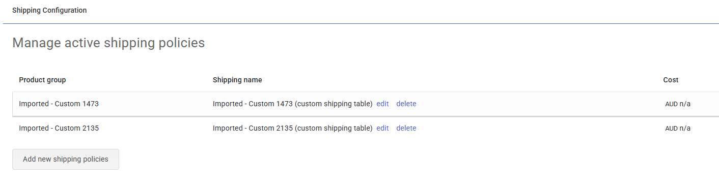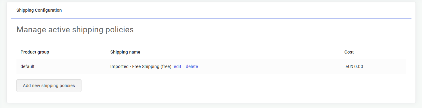- We will import your existing shipping policies, if there is only 1 policy it will be called Default.